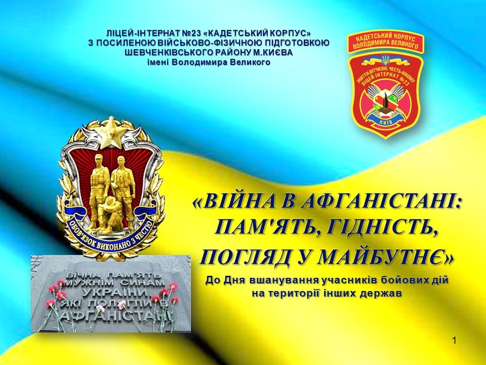 ВІЙНА В АФГАНІСТАНІ: ПАМ'ЯТЬ, ГІДНІСТЬ, ПОГЛЯД У МАЙБУТНЄ.